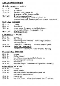 Gottesdienstzeiten der Kar- und Osterliturgie Christine Fleck2026-03-25T15:39:06+01:0025. März 2026|Allgemein| Ähnliche Beiträge Wir suchen eine Pflegehilfskraft Wir suchen eine Pflegehilfskraft Herzliche Einladung zur Veranstaltung vom Forum Hospiz Gallerie Herzliche Einladung zur Veranstaltung vom Forum Hospiz Wie fühlt sich Kloster an? – Kennenlerntage im Kloster Brandenburg Gallerie Wie fühlt sich Kloster an? – Kennenlerntage im Kloster Brandenburg